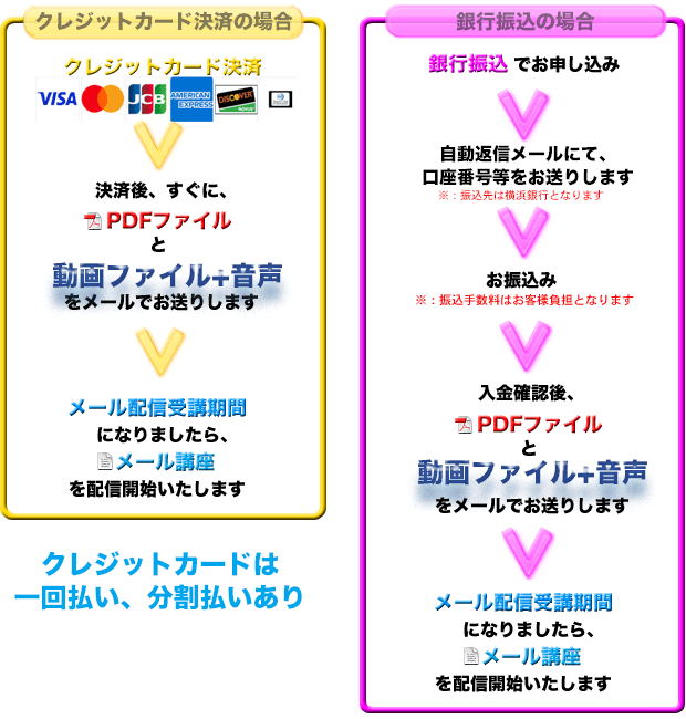 お申し込みは、↓の注意点をお読みの上、お支払方法をお選びください。
