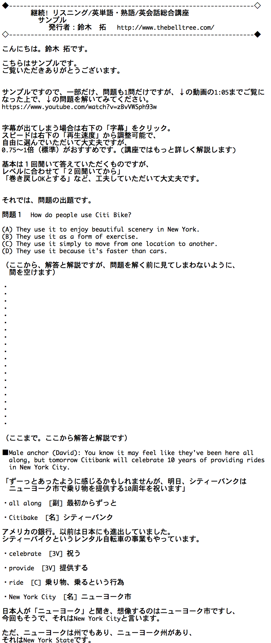 リスニング教材にするために作られた英語であるため、